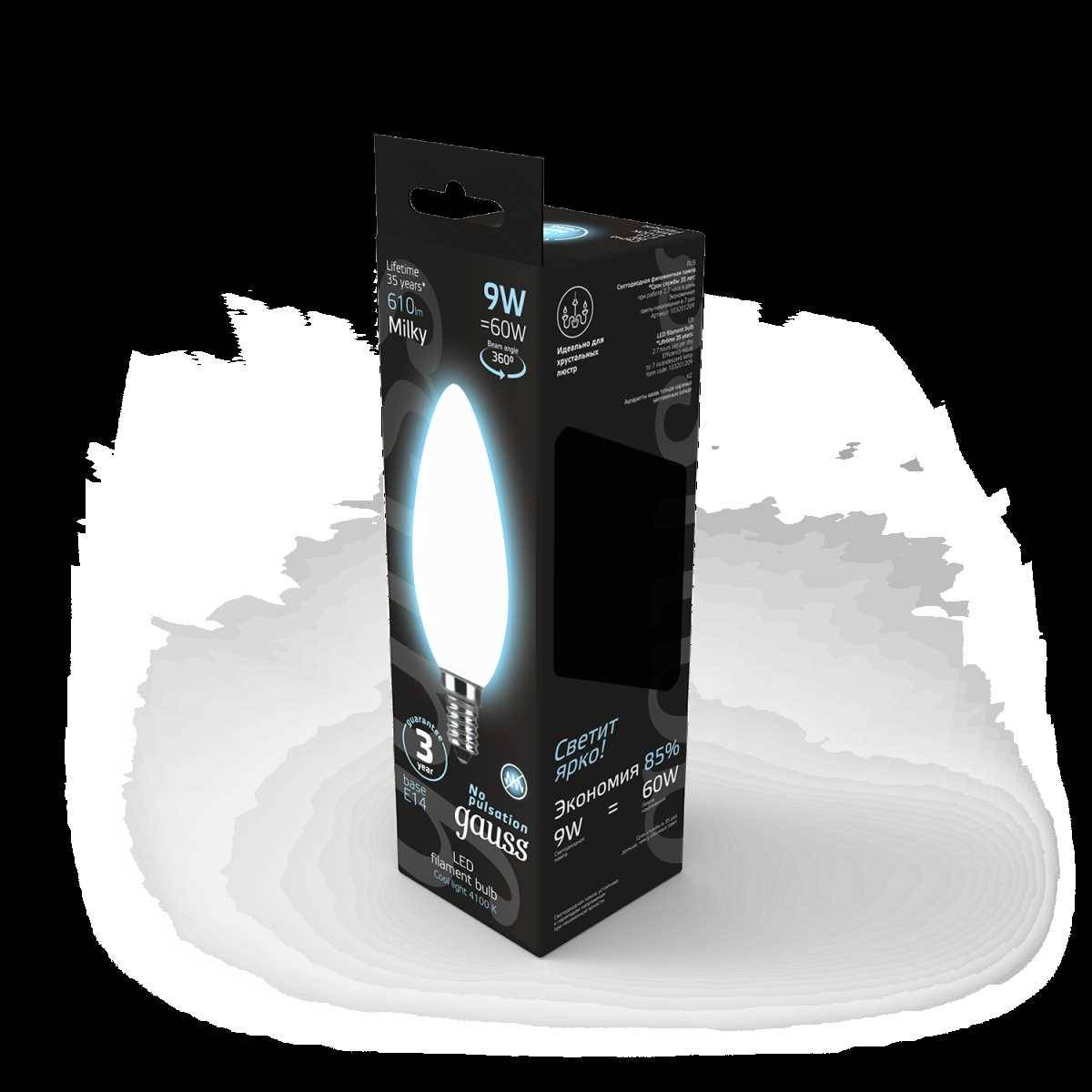 Лампа светодиодная филаментная Gauss E14 9W 4100К матовая 103201209