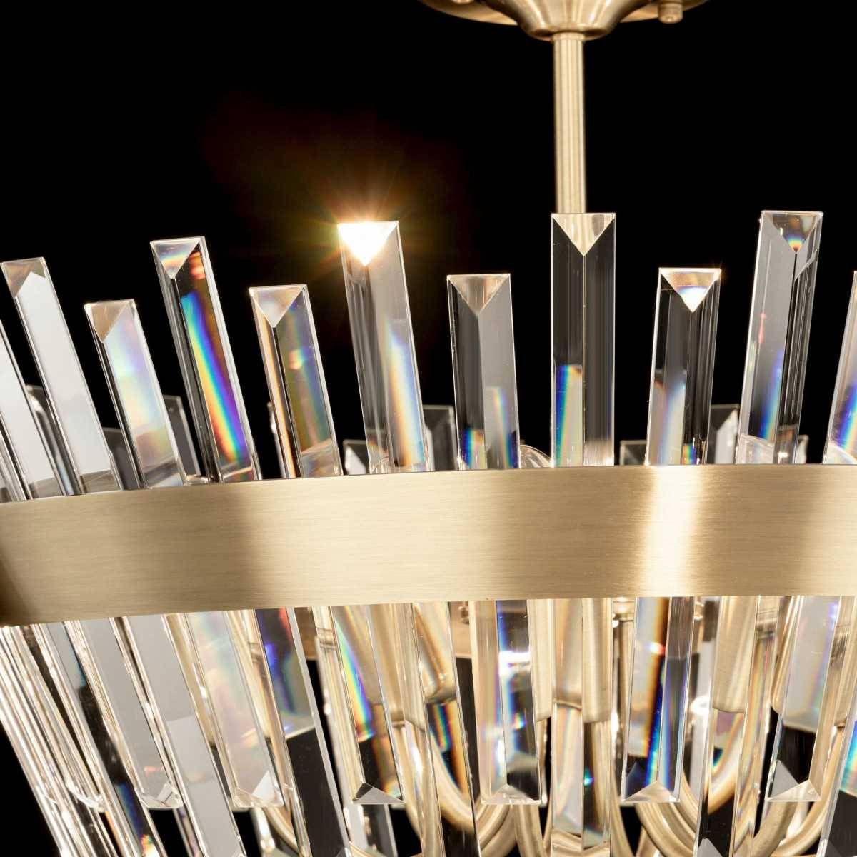 Преимущества данной люстры не ограничиваются лишь ее визуальными характеристиками. Изготовленная из качественных материалов, таких как металл и хрусталь, она надежна и долговечна. Эта люстра совместима с энергетически эффективными LED-лампами, что позволит вам сэкономить на счетах за электроэнергию, не жертвуя яркостью и функциональностью освещения.