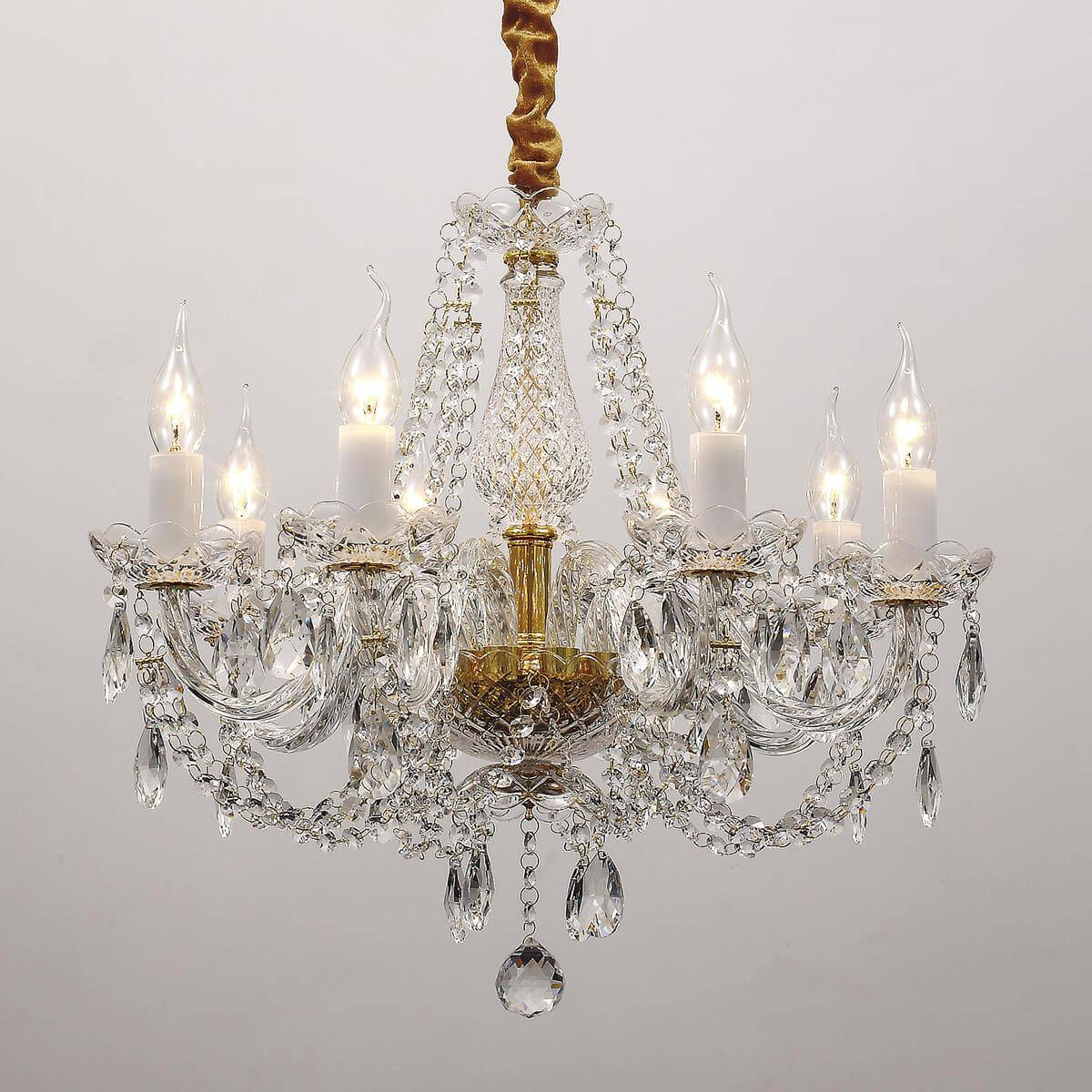 Изготовленная из хрустального материала и обладающая арматурой золотого цвета, эта люстра позволяет создать эффектное освещение для квартиры, дополняя ваш интерьер с помощью световых акцентов. Luxe стиль, в котором исполнен этот подвесной светильник, делает его идеальным выбором для людей с утонченным вкусом, стремящихся к классическим решениям.