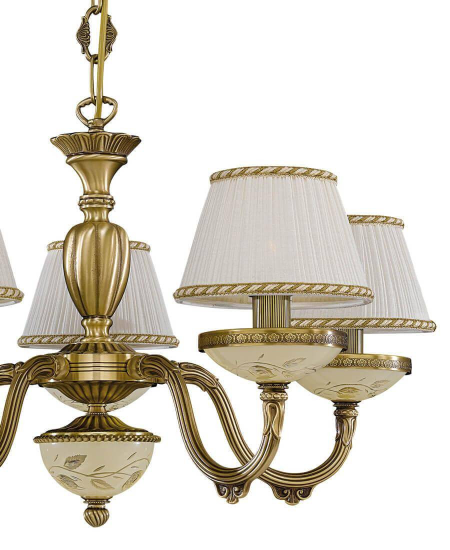 Производитель Reccagni Angelo, известный своим оригинальным дизайном и высоким качеством материалов, предлагает вам наслаждаться атмосферным освещением для дома. Люстра выполнена из текстиля и стекла, а арматура изготовлена из прочной латуни, что гарантирует долговечность и надежность. Цвет арматуры в стиле античной бронзы в сочетании со светло-желтыми плафонами создаёт мягкое и приятное свечение.