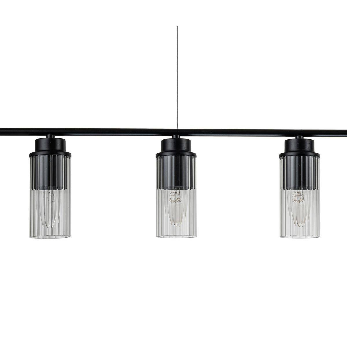 Материалы, из которых изготовлен светильник, говорят о его высоком качестве и надёжности: металл и стекло создают прочную и эстетически привлекательную конструкцию. Черная арматура и прозрачные плафоны придают люстре оригинальный вид, который подчеркнёт современный стиль любого интерьера. Простота установки и крепления на планку гарантируют, что вы сможете легко установить её самостоятельно.