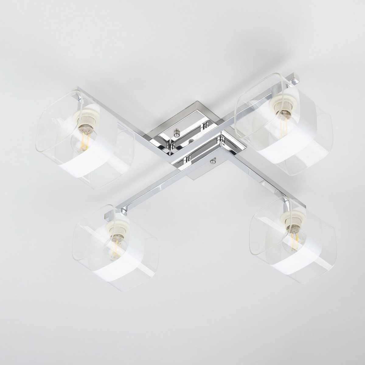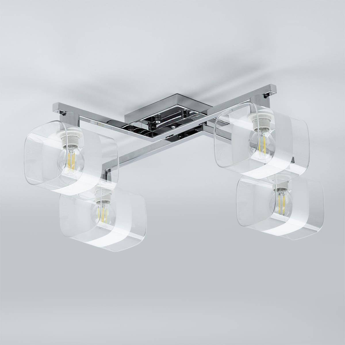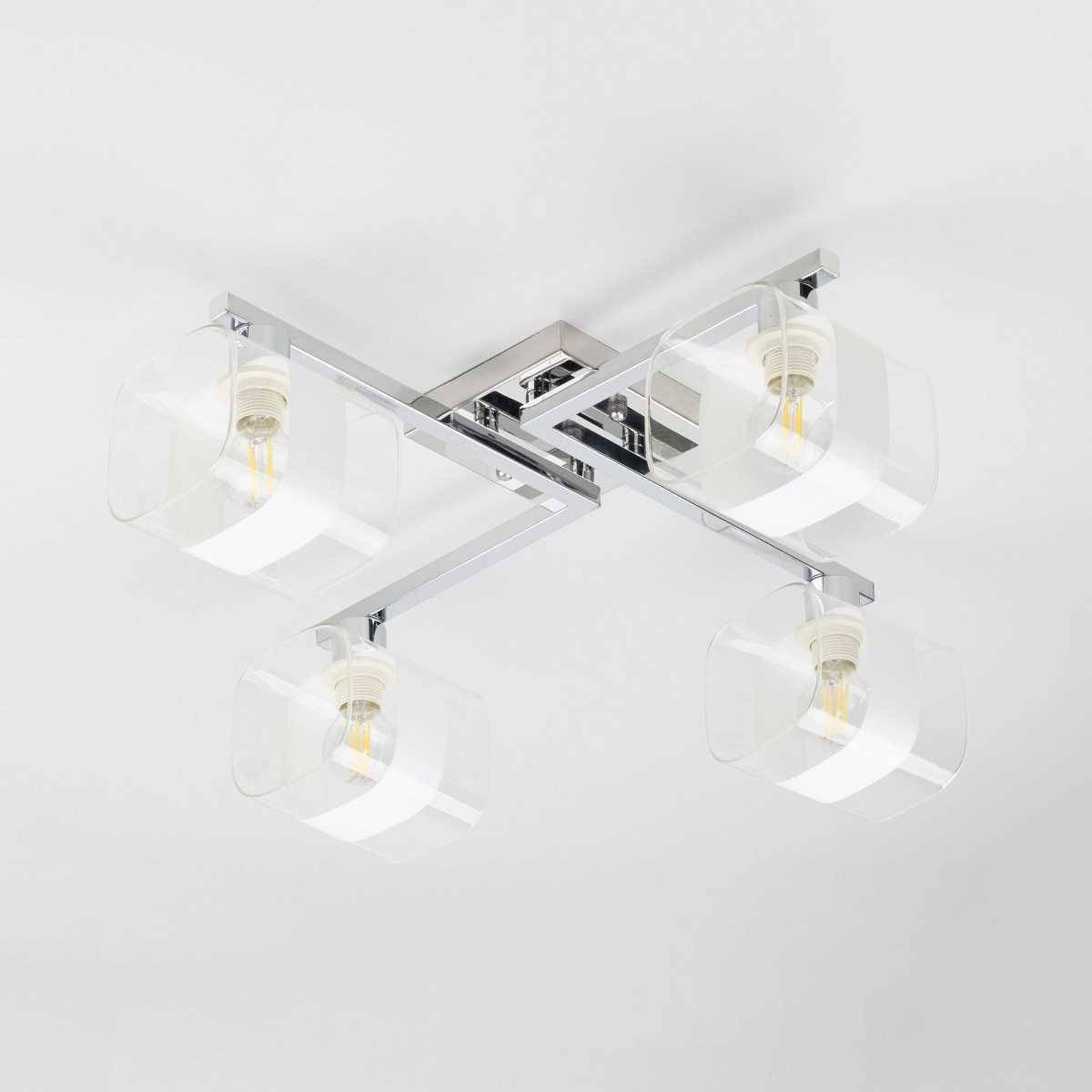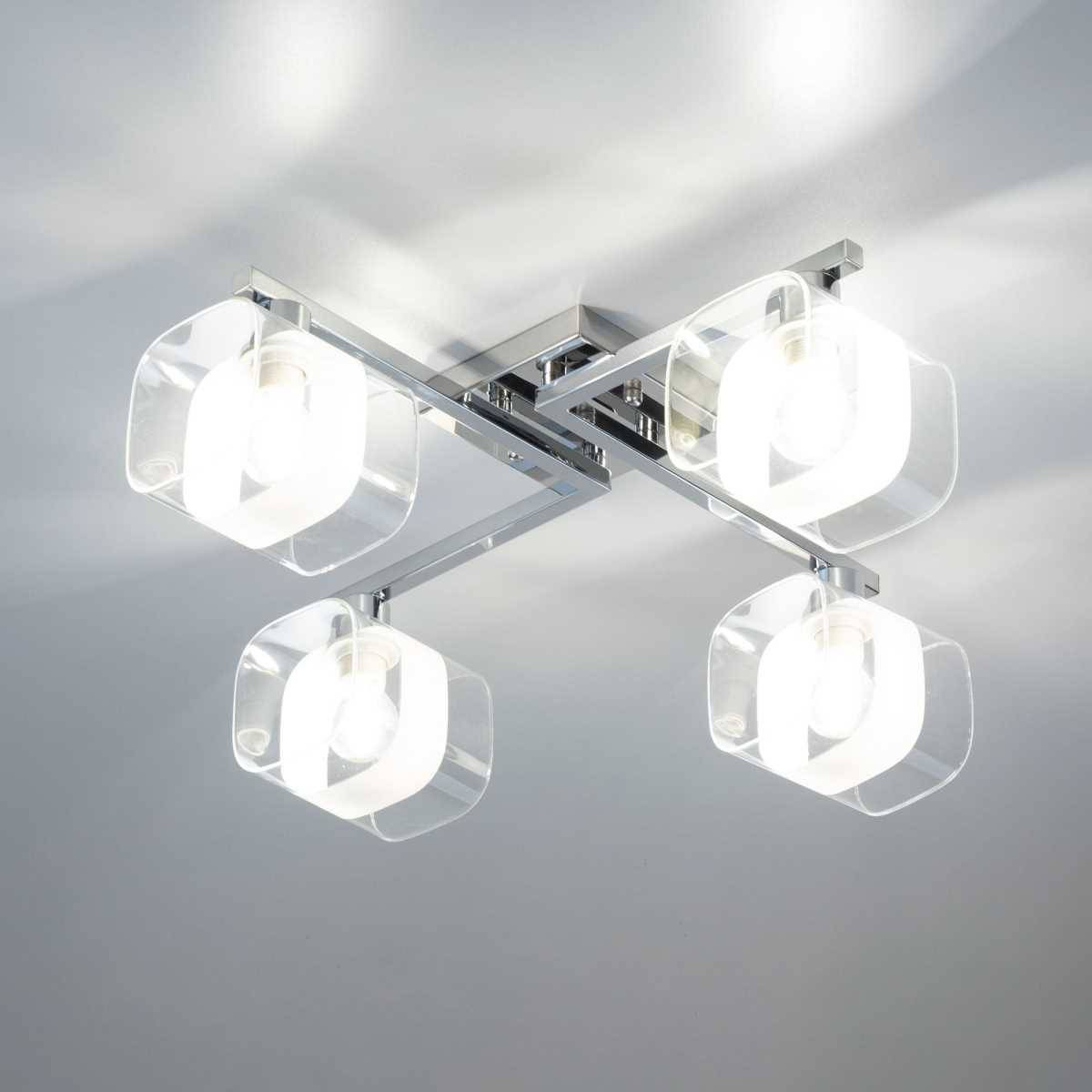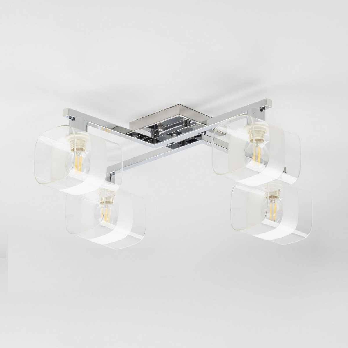 Люстра имеет оригинальный дизайн и выполнена в стиле современного минимализма, что делает её универсальным выбором для различных стилей. Она состоит из четырёх ламп с мощностью 60 Вт каждая, что обеспечивает общий световой поток 2600 лм — идеальный уровень освещения для площади до 11 м². Этот светильник совместим с лампами типа E14, включая энергосберегающие и LED-лампы, что позволяет вам использовать его в различных вариантах, обеспечивая тем самым экономию на энергопотреблении.
