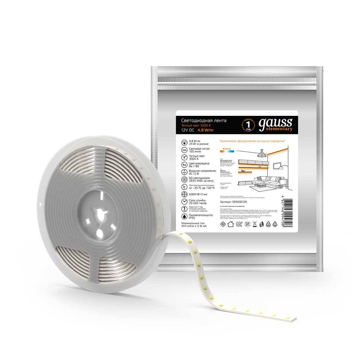 | Цветовая температура, K | 3000K | |