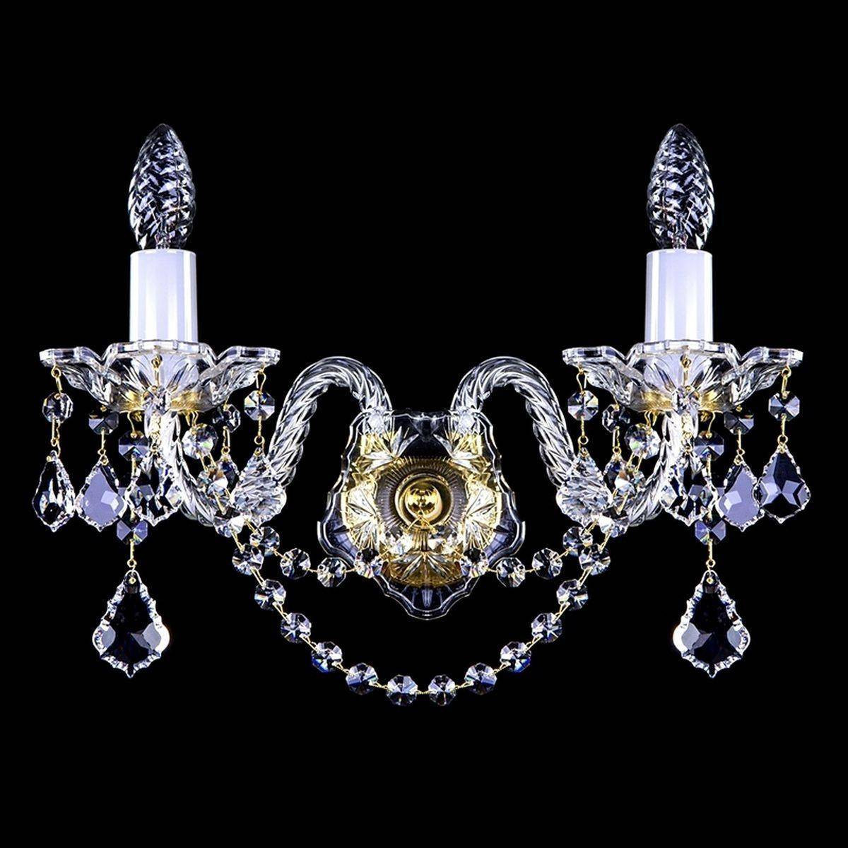 Светильник выполнен из высококачественных материалов, включая хрусталь и металл, что обеспечивает его долговечность и надежность. Его высота составляет 250 мм, ширина – 340 мм, и он оснащен двумя лампами с мощностью 40W каждая, что дает вам общую мощность 80W. Совместимость с лампами типа E14 позволяет использовать как традиционные, так и энергосберегающие LED лампы, что делает этот светильник невероятно универсальным.