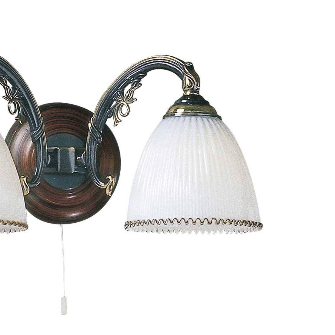 Изготавливаемый итальянским производителем Reccagni Angelo, этот настенный светильник принадлежит к коллекции Bronze 3800 и выполнен в стильном классическом дизайне. Мощность составляющих ламп достигает 120 Вт, что обеспечивает достаточное освещение для площади до 6 м². Бра совместимо с лампами с цоколем E27, включая как лампы накаливания, так и энергосберегающие LED.