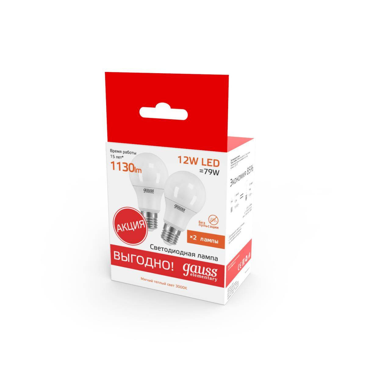 | Цветовая температура, K | 3000K | |
