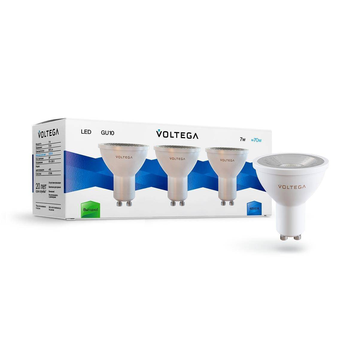 Набор светодиодных ламп Voltega GU10 7W 4000К прозрачная 7177