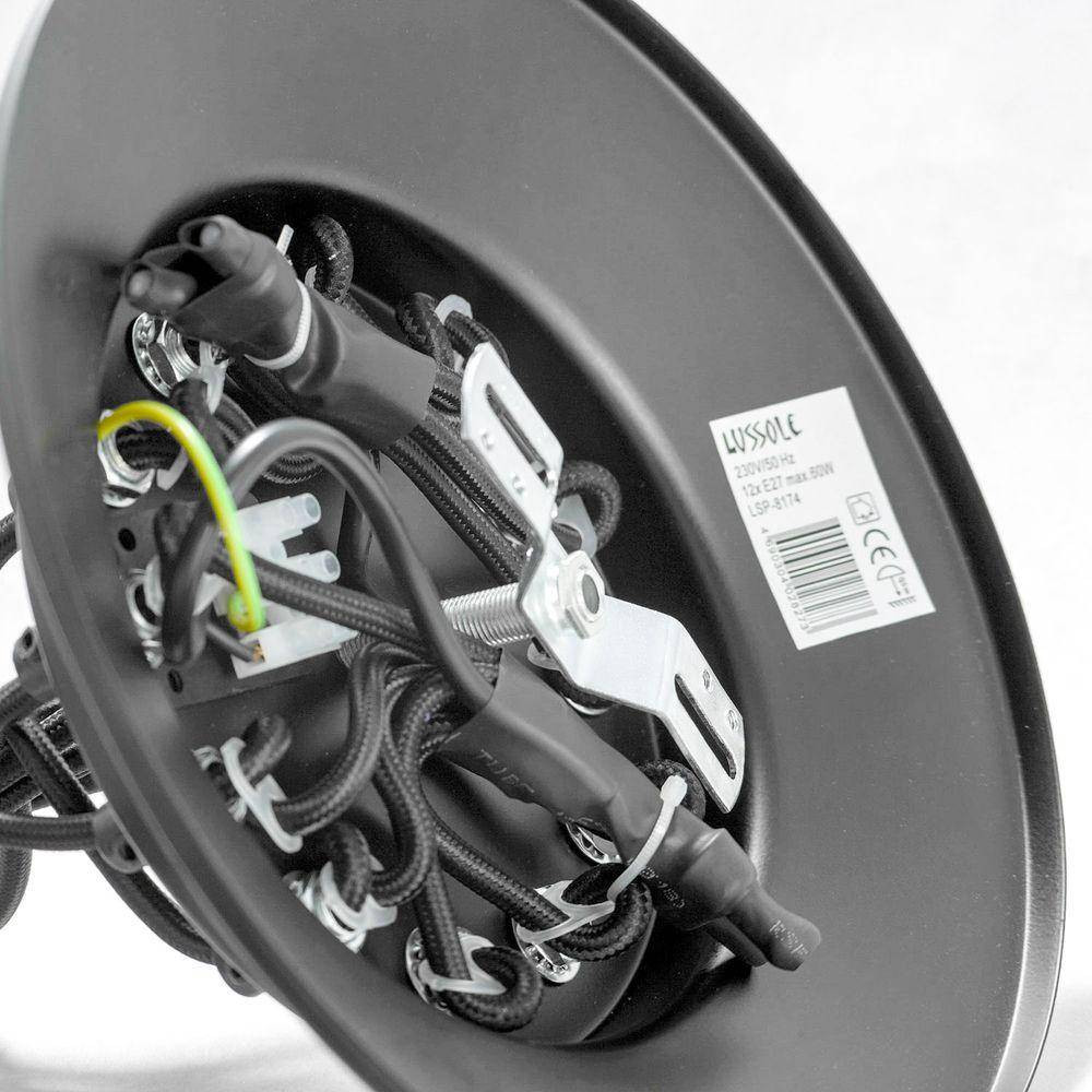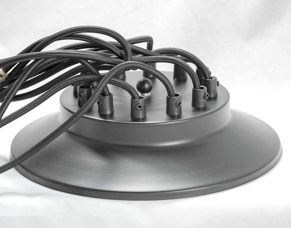 Люстра выполнена из высококачественного металлического материала, а черный цвет и отсутствие плафонов подчеркивают ее оригинальный дизайн в стиле современный. Установка подвесного светильника проста и не требует особых усилий, что делает его доступным даже для тех, кто не имеет опыта в ремонте.