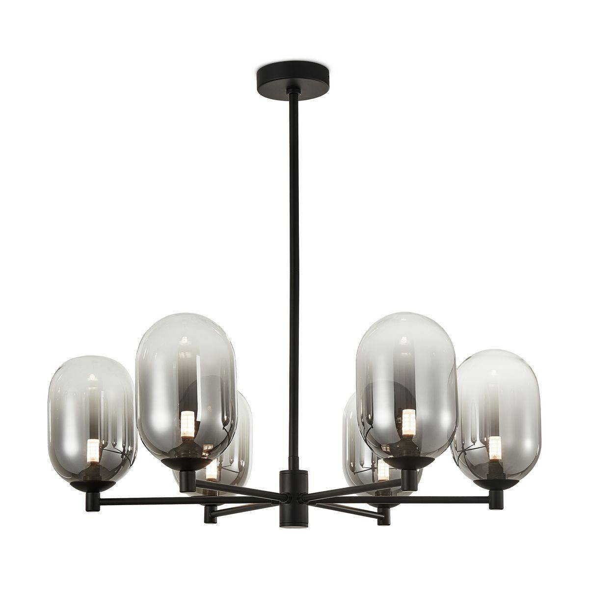 Кроме того, установка данной потолочной люстры не требует особых навыков, что позволяет легко и быстро установить её в любом помещении. Благодаря оригинальному дымчатому цвету арматуры и плафонов, она станет стильным дополнением к вашему интерьеру, а её овал образует мягкий свет, который создает атмосферу уюта и расслабления.
