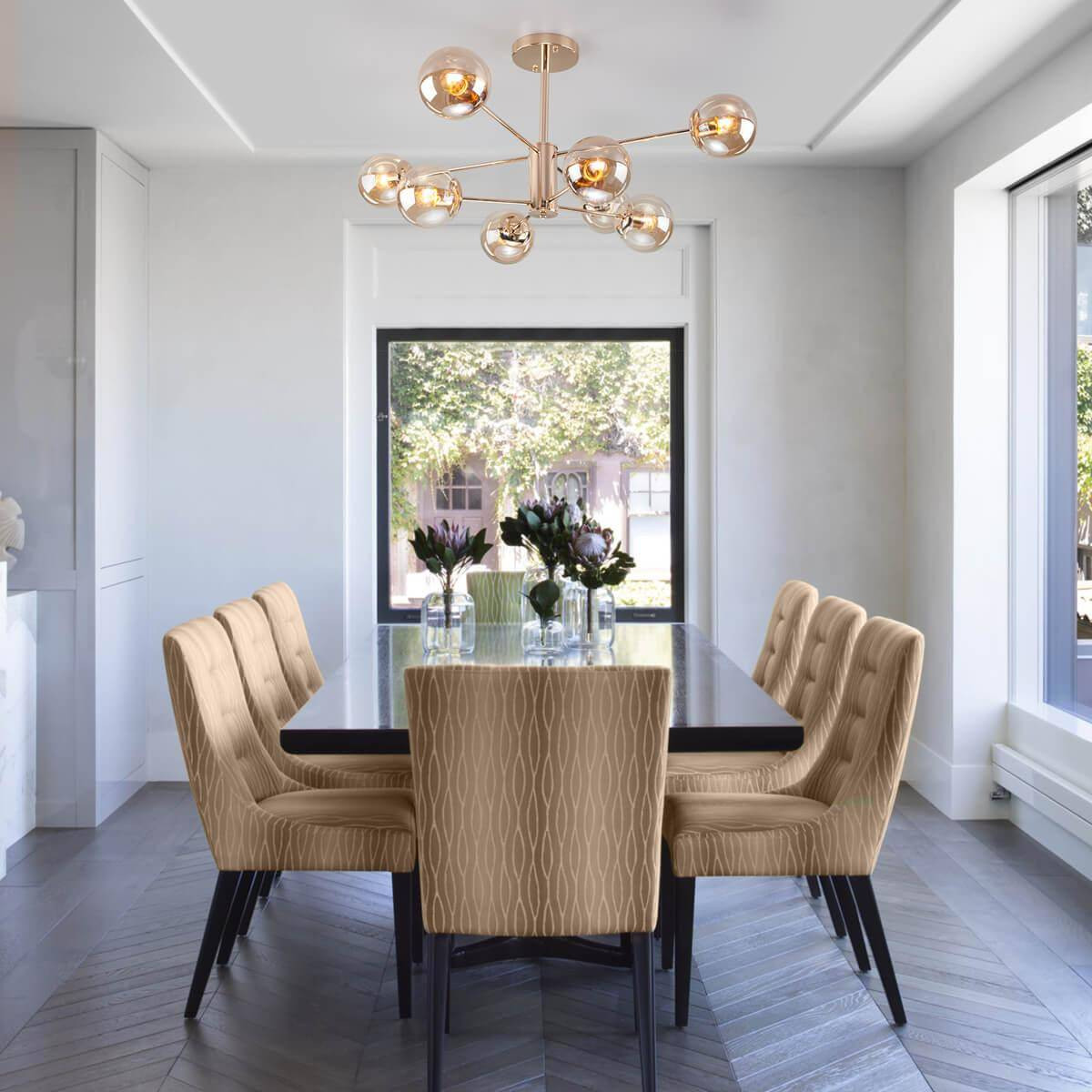С высотой 530 мм и диаметром 750 мм, данная люстра прекрасно подходит для освещения больших пространств, таких как гостиные или офисные помещения. Оснащённая восемью лампами с мощностью 60 Вт каждая, она предоставляет общее освещение в 480 Вт, что делает её отличным выбором для освещения для квартиры. Люстра использует стандартные лампы с цоколем E27, включая энергосберегающие LED модели, что способствует снижению затрат на электроэнергию и увеличивает срок службы светильника.