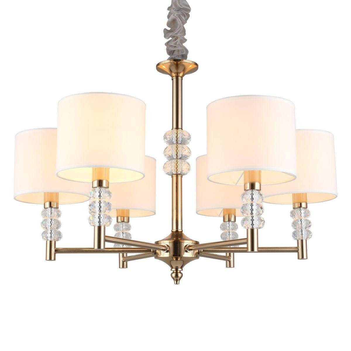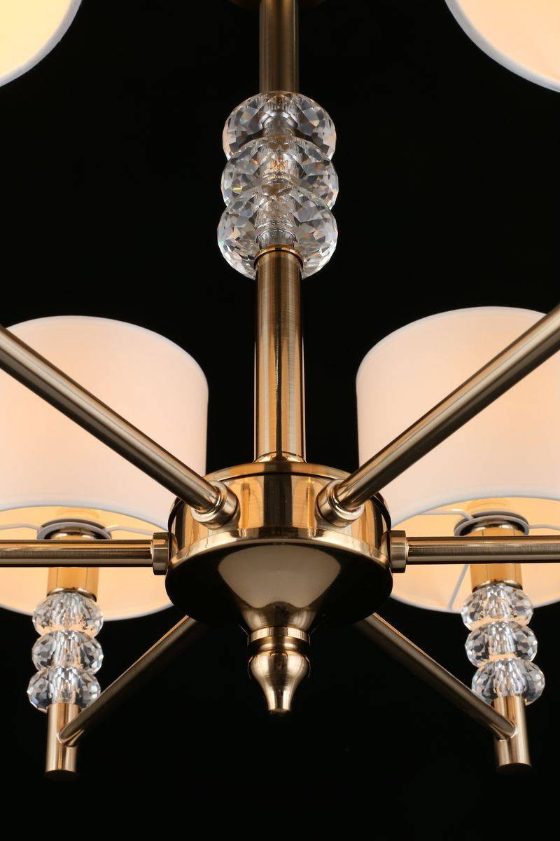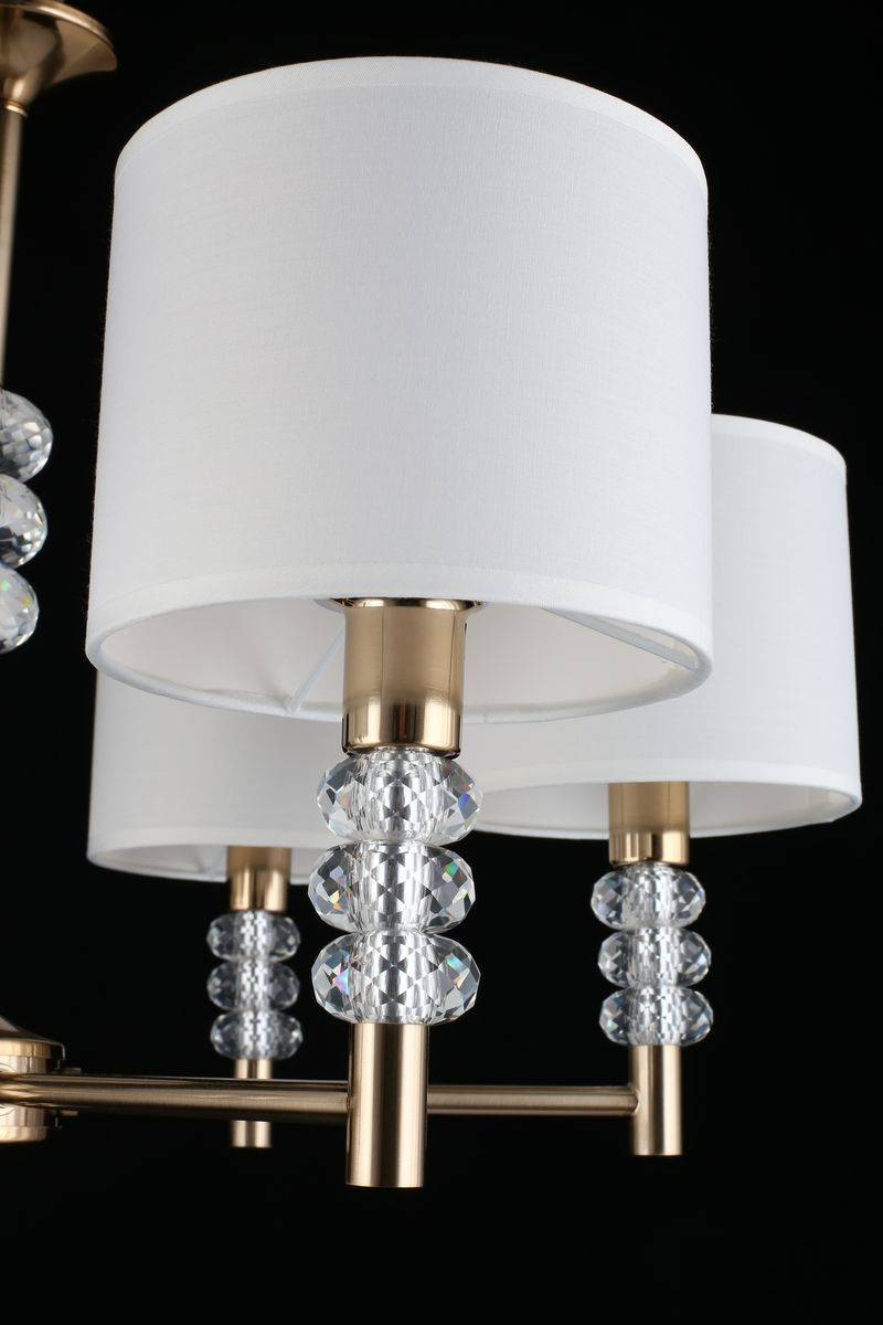 Материалы, использованные в конструкции, включают высококачественный текстиль и металл. Ткань плафонов выполнена в белом цвете, а арматура украшена золотистыми элементами, создавая оригинальный дизайн, который привлечет внимание ваших гостей. Светильник станет идеальным решением для освещения для квартиры и добавит изысканности в ваш интерьер.
