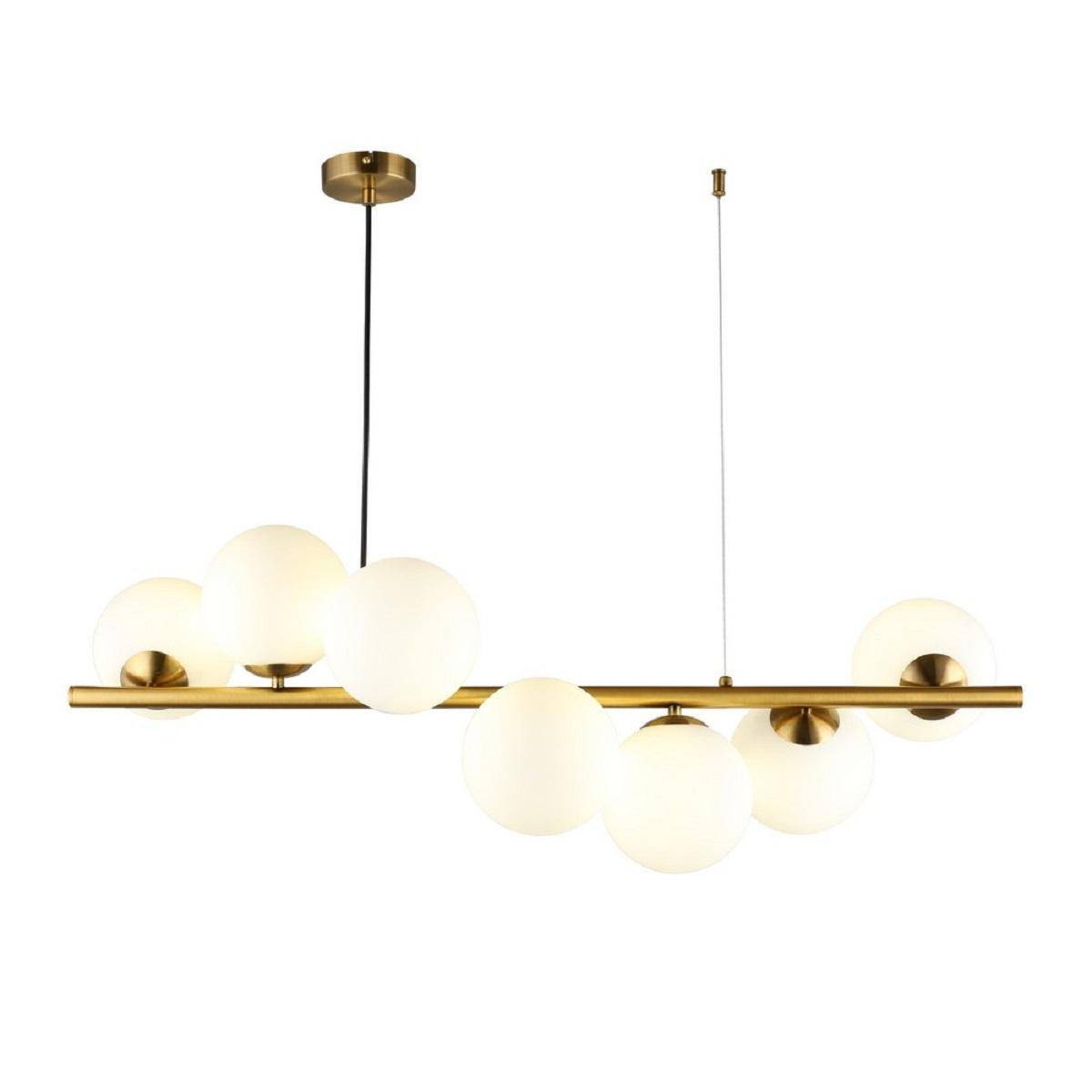 Подвесная люстра Aployt Jagna APL.312.13.07 – это идеальное решение для вашего интерьера, если вы ищете стильное и практичное освещение для дома. Изготовлена из высококачественных материалов: металлическая арматура и стеклянные плафоны создают надежную и долговечную конструкцию, которая станет центральным элементом вашего пространства. Стильная латунная отделка добавляет нотку элегантности, а белый цвет плафонов обеспечивает мягкое и равномерное освещение для квартиры.