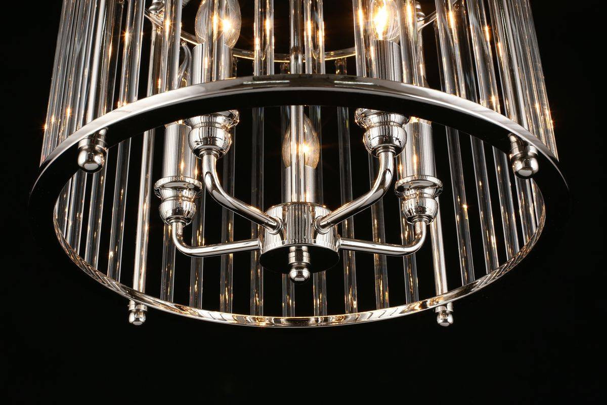 Данная люстра выполнена в американском стиле, что делает её прекрасным выбором для освещения для кафе и ресторанов, а также для вашего дома. Она изготовлена из высококачественного металла, что обеспечивает её долговечность и надежность в использовании. Благодаря стильному хромированному цвету, этот подвесной светильник гармонично впишется в любые современные интерьеры.
