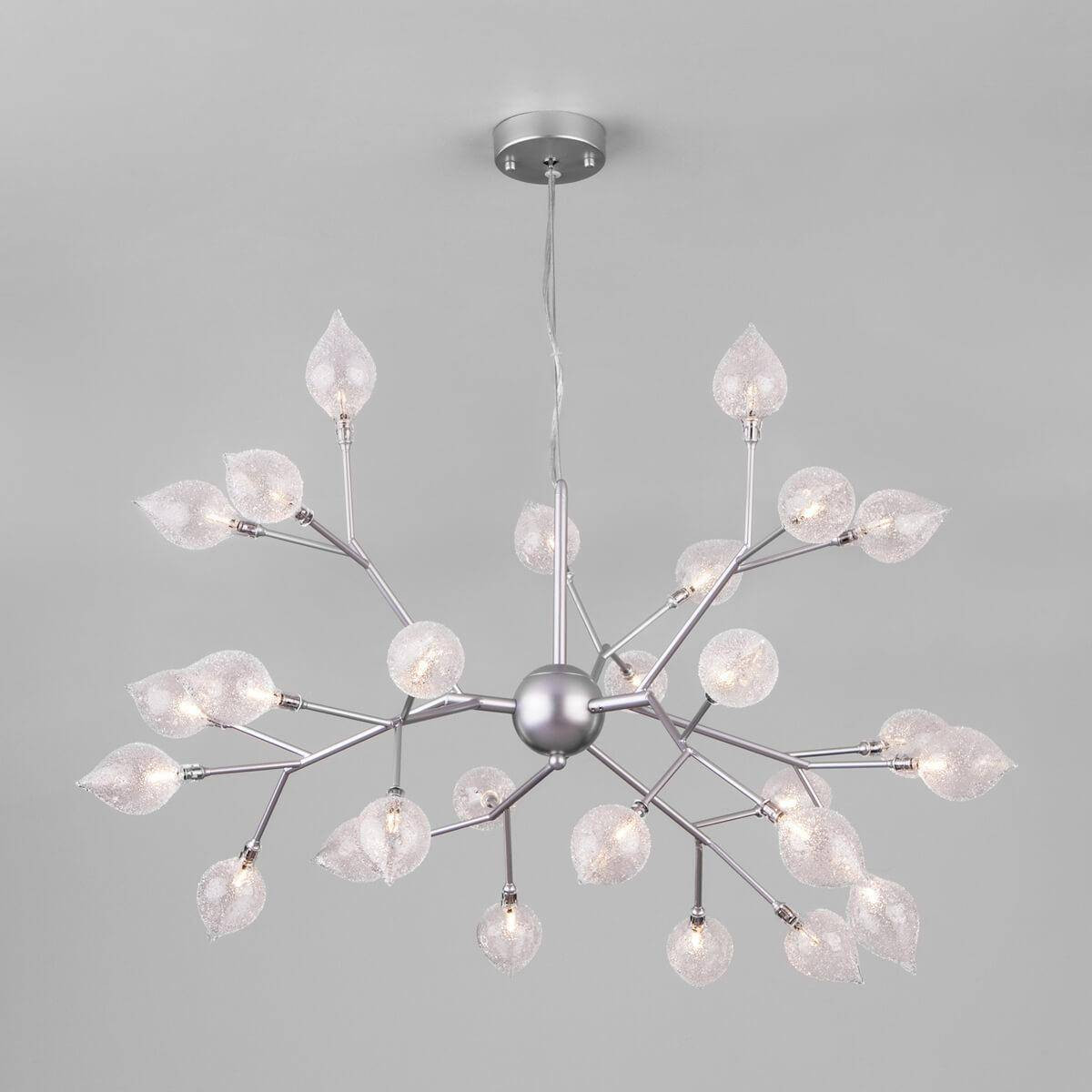 Созданная в уникальном флористическом стиле, эта люстра подойдет для гостиных, спален, кухонь и офисов. Стеклянные плафоны, выполненные из высококачественного материала, создают мягкий и уютный свет, а металлическая арматура с серебристым покрытием придает изделию дополнительную элегантность. Преимущества данной люстры заключаются не только в её оригинальном дизайне, но и в высоком качестве материалов, что гарантирует долговечность и надёжность эксплуатации.