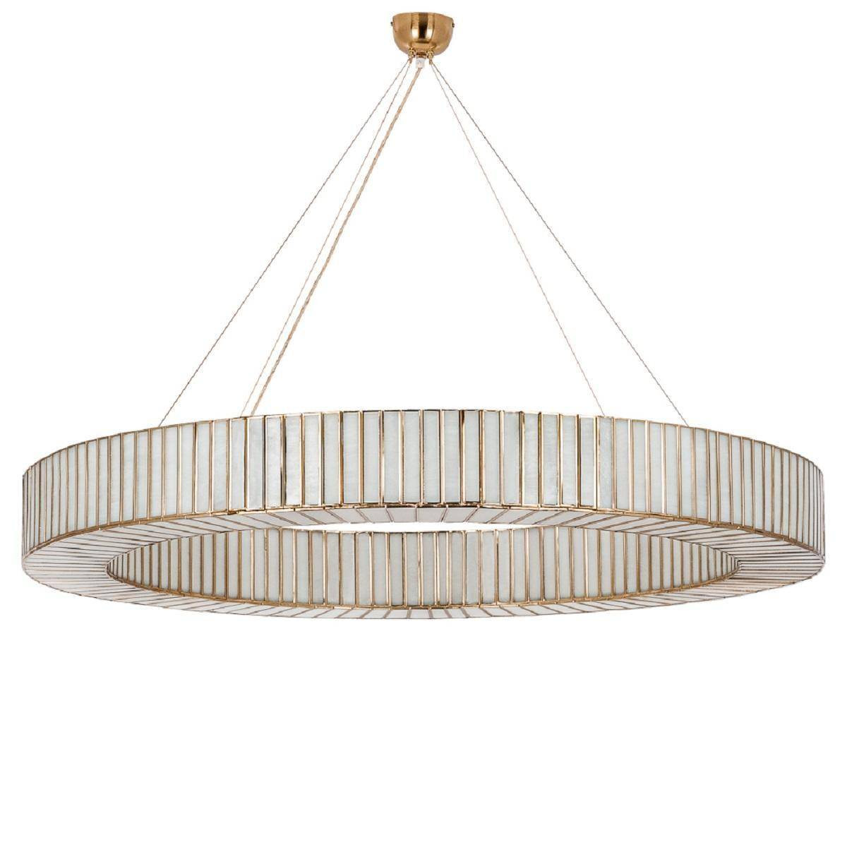 Изготовленная из качественных стеклянных и металлических материалов, она не только привлекает внимание своим оригинальным дизайном, но и гарантирует долговечность. Матовая отделка плафонов и латунная арматура создают элегантный стиль модерн, который отлично впишется в любой интерьер, будь то квартира, офис или загородный дом.