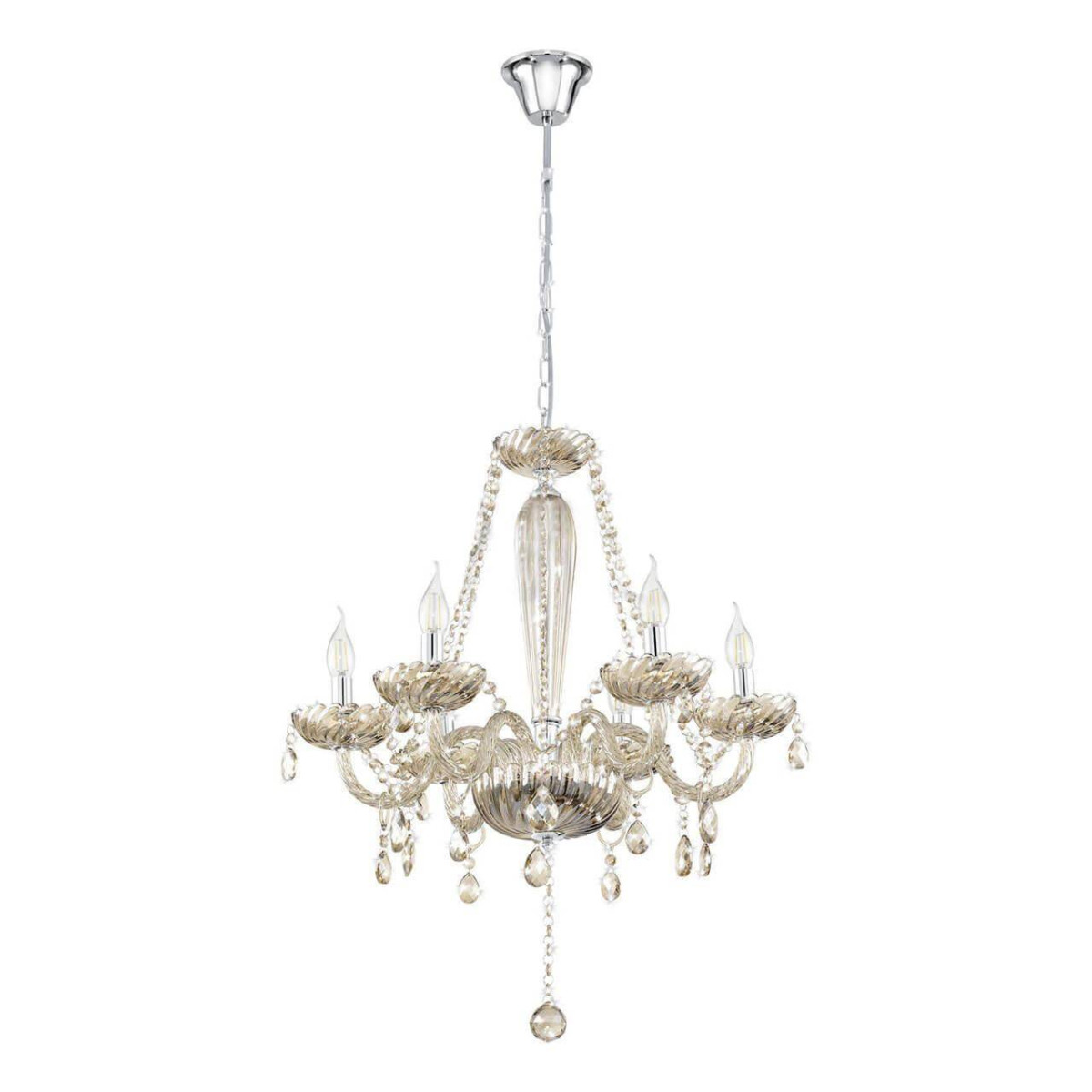 Люстра Eglo Basilano выполнена из стеклянных элементов и металлической арматуры,