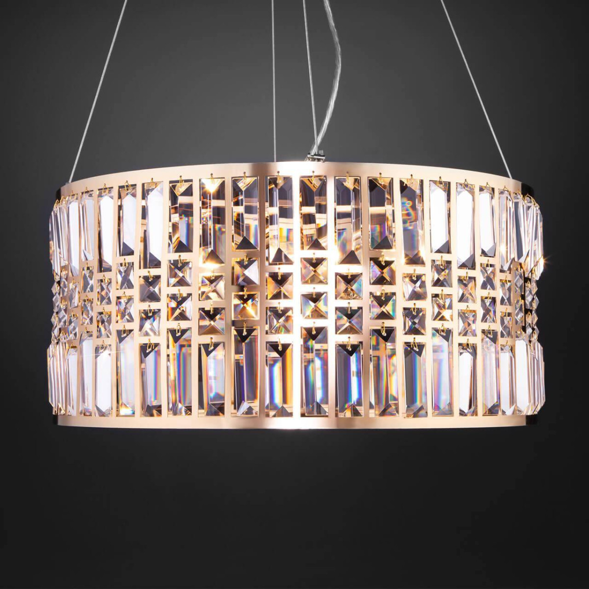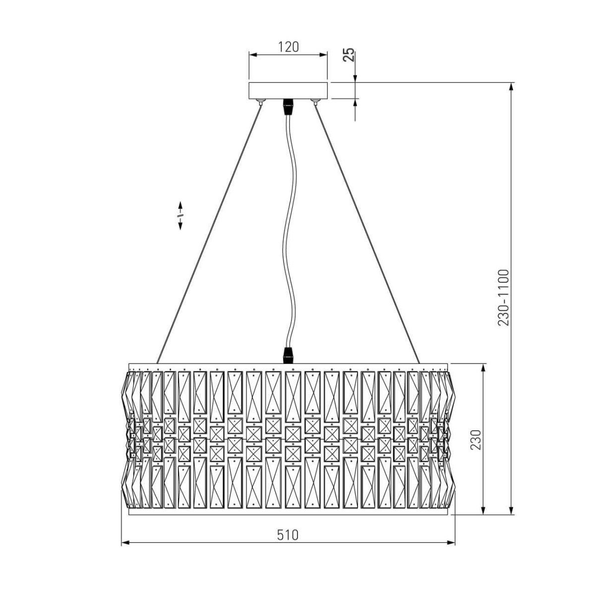 Устройство легко установить благодаря типу крепления на планку и типу подвеса на тросах. Люстра прекрасно распределяет свет благодаря своей цилиндрической форме рассеивателя, что создает уютную атмосферу. Этот светильник не только служит практичным элементом освещения, но и elevates the style of your room, внося нотку элегантности и стиля.