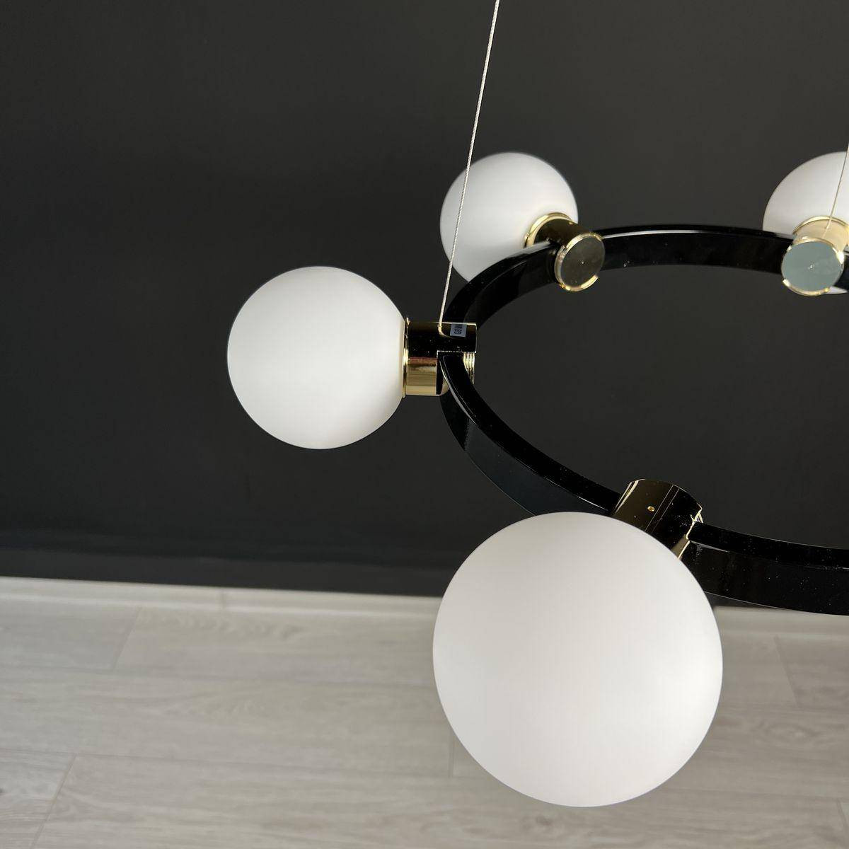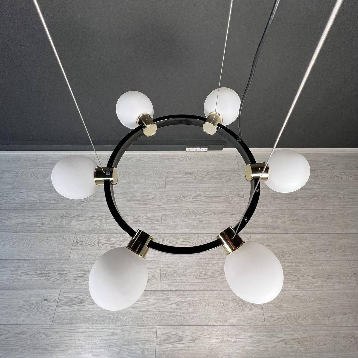 С данной люстрой вы сможете осветить площадь до 20 м² благодаря её мощным 6 лампам с цоколем G9. Учитывая, что мощность каждой лампы составляет 40 Вт, вы можете использовать как галогеновые, так и энергосберегающие LED лампы, что делает её совместимой с лампами разных типов. Стеклянные плафоны белого цвета и черная металлическая арматура создают оригинальный контраст, внося интересный акцент в ваш интерьер.