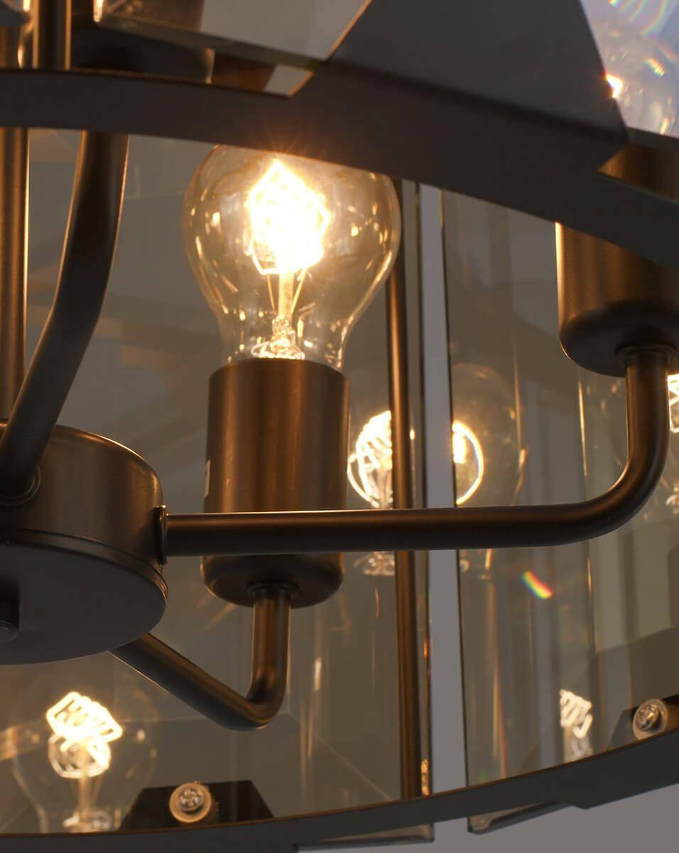 Изготовленная из высококачественных материалов — стекла и металла, люстра прекрасно впишется в интерьер в стиле кантри. Янтарные плафоны и черная арматура создают оригинальный дизайн, который станет изюминкой любого помещения. Подвесной светильник имеет мощность 300 Вт и совместим с лампами типа E14, включая энергосберегающие LED-лампы, что делает его универсальным и современным.