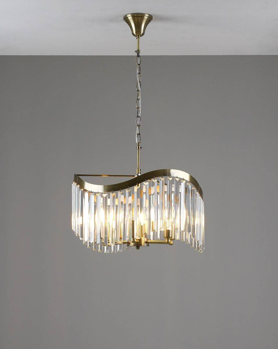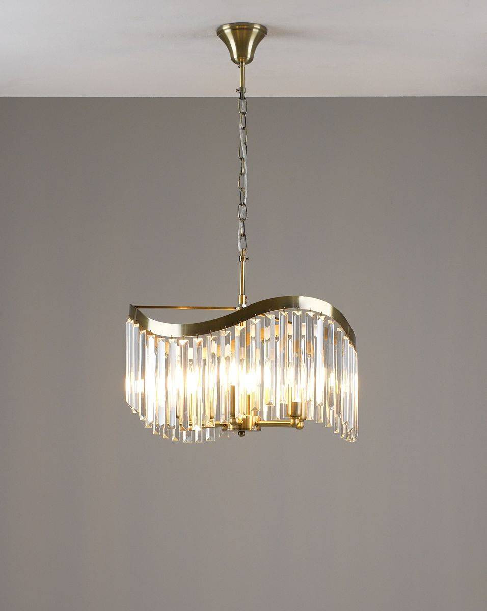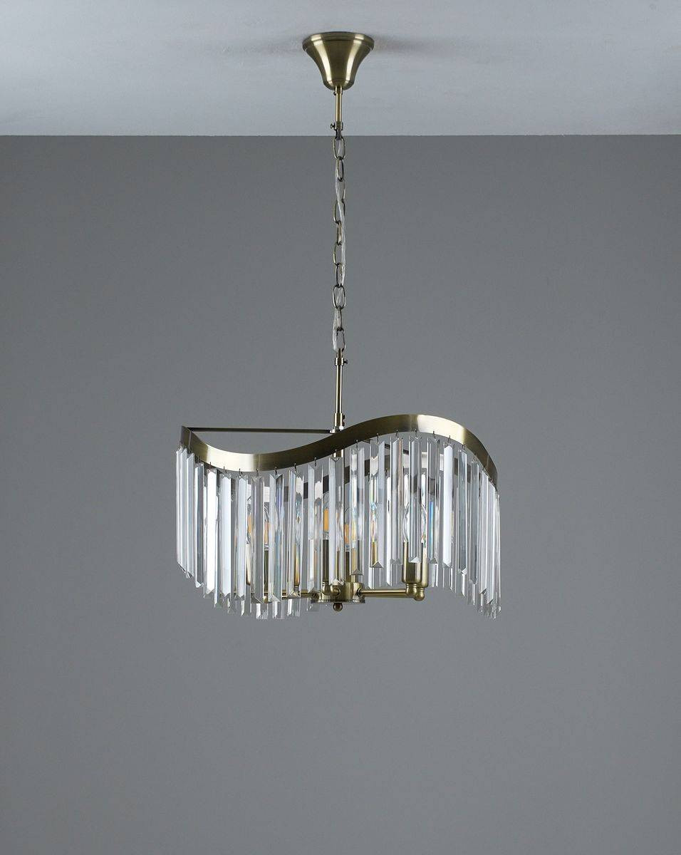 Кроме того, люстра Moderli Wave имеет великолепный золотой цвет арматуры и прозрачные хрустальные плафоны, которые шикарно отражают свет и наполняют пространство мягким блеском. Этот элемент освещения прекрасно вписывается в современный дизайн интерьеров, добавляя нотки роскоши и утонченности. Потолочная люстра легко устанавливается на крюк, а длина подвеса в 1000 мм позволяет адаптировать её под любые потолки.