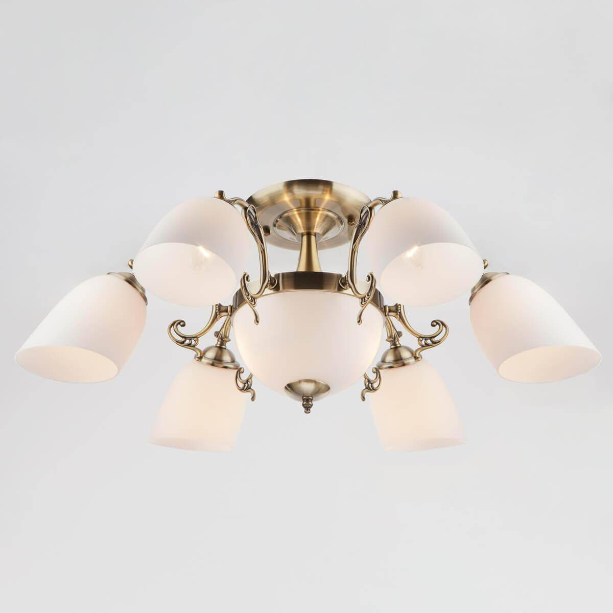 Материалы, использованные в данной люстре, выполнены из металла и стекла, что гарантирует высокую надежность и долговечность. Цвет арматуры – бронзовый, а плафоны – белые, что создает стильный контраст и визуально расширяет пространство. Люстра подходит для установки в гостиных, спальнях, кухнях, а также в офисах, добавляя уют и элегантность.