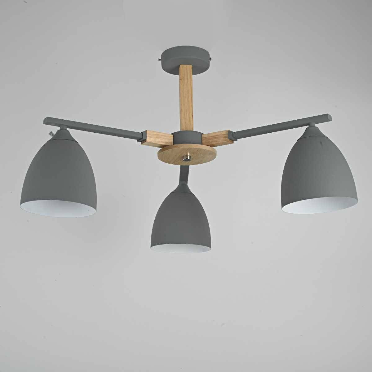 Эта люстра обладает достаточно компактными размерами: высота составляет 350 мм, а диаметр — 650 мм, что делает её универсальной для установки на низкие потолки. Потолочная люстра оборудована тремя плафонами, которые направлены вниз, обеспечивая оптимальное распределение света. Мощность ламп составляет 60 Вт, а общая мощность достигает 180 Вт, что позволяет эффективно освещать площадь до 9 м². Она совместима с лампами E27, включая LED-лампы и лампы накаливания, что обеспечивает вам гибкость в выборе источников света.