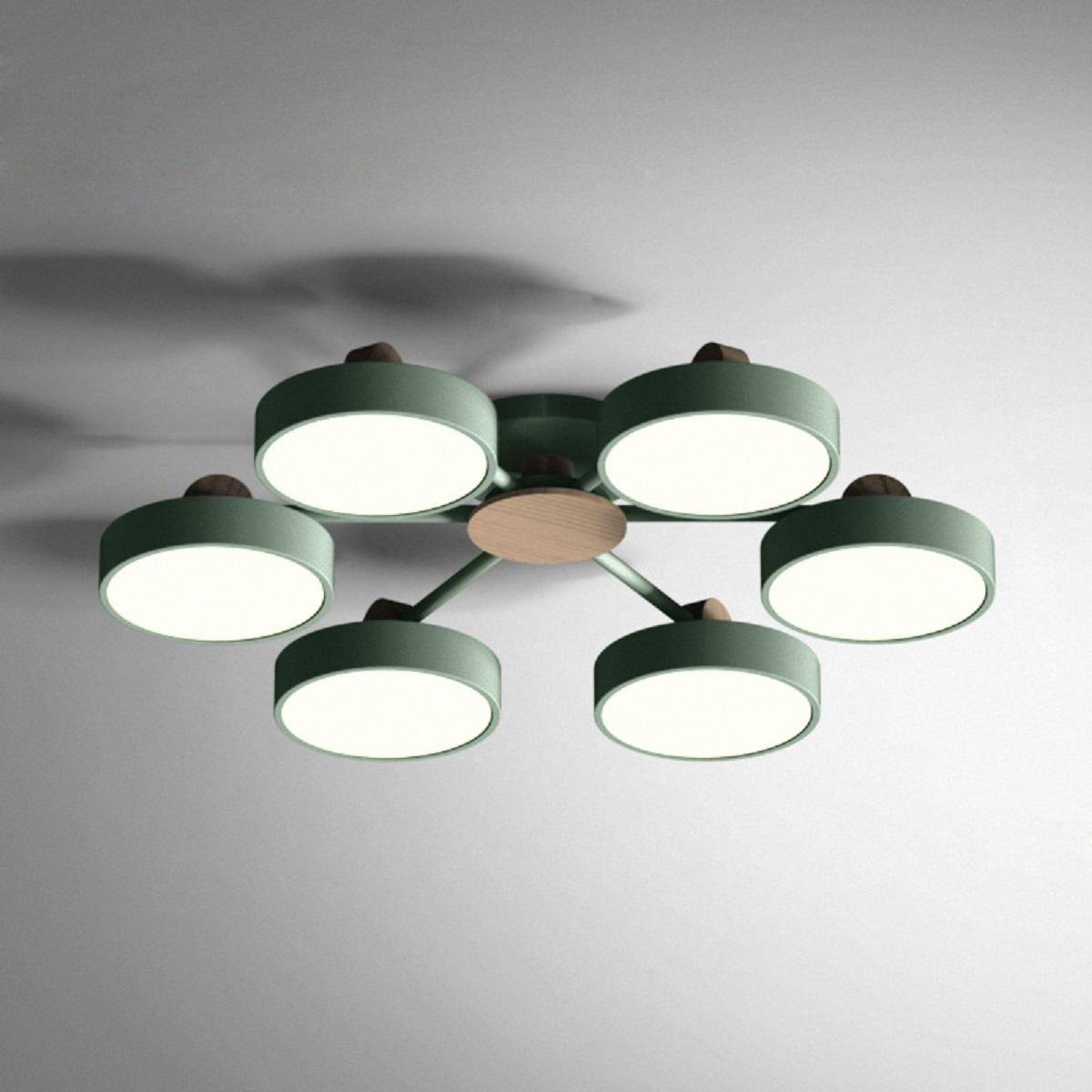 Эта потолочная люстра выполнена в выразительном зеленом цвете, что делает её отличным акцентом в любом интерьере. Использование металла в конструкции обеспечивает её надежность и долговечность. Светильник имеет размеры 840х840 мм и подходит для помещений с низкими потолками, что делает его универсальным выбором для вашей гостиная, спальни или даже коридора.