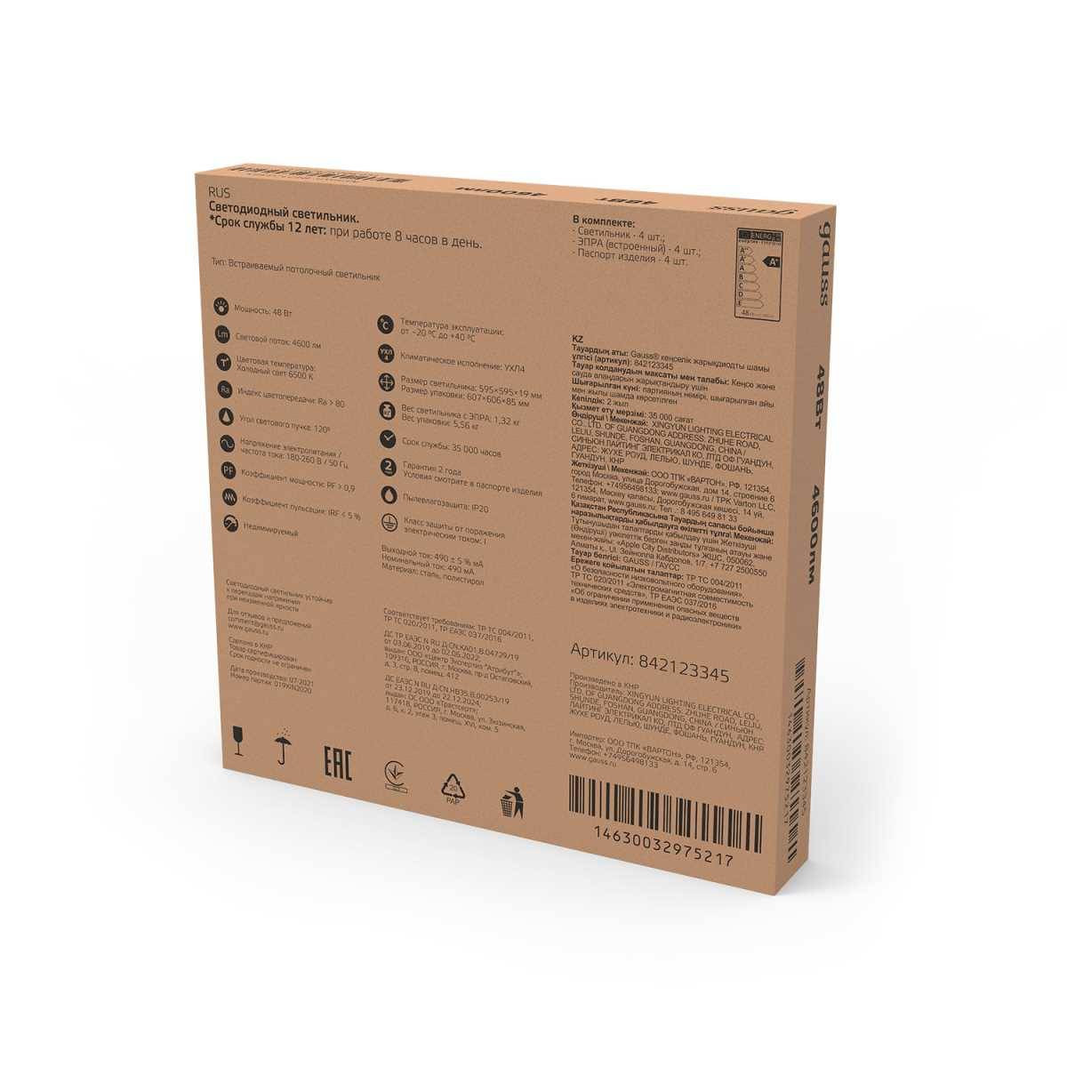 | Ширина, мм | 595 | |
