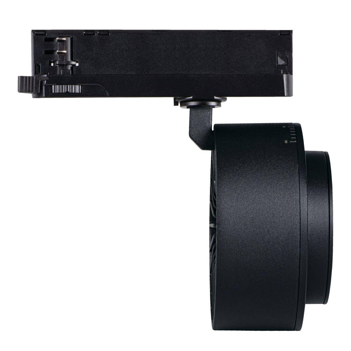 Трековый светильник выполнен из прочных материалов: алюминий и пластик. Такой выбор гарантирует не только стильный взгляд, но и долговечность. Черный цвет соответствует принципам современного дизайна и подходит к большинству стилей интерьеров, включая стиль хай-тек. Легкое и быстрое крепление на шину делает установку не только простой, но и быстрой, что позволит вам наслаждаться новым освещением без лишних хлопот.