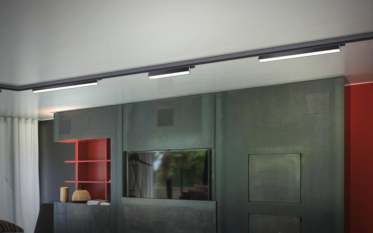 Его высота составляет всего 79 мм, а длина — 588 мм, что делает установку простой и быстрой. Благодаря трехфазному креплению к шине, вы сможете настроить направленность плафонов для максимального удобства. Это освещение идеально подходит для гостиной, спальни, кухни или коридора, создавая комфортную атмосферу.